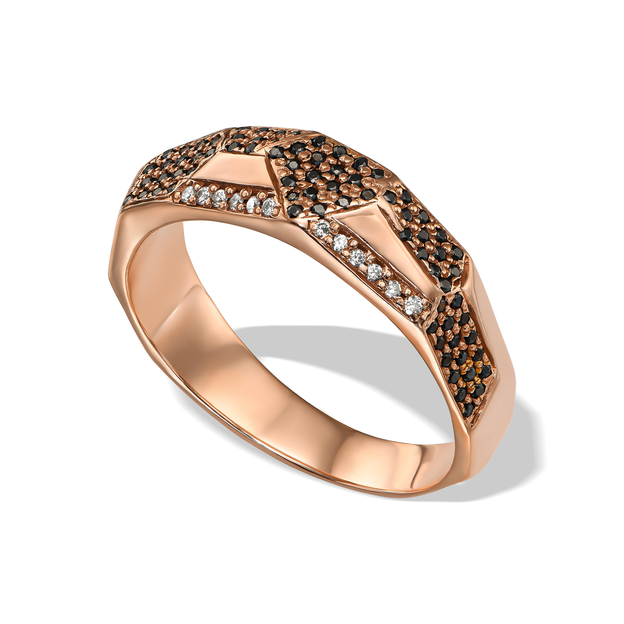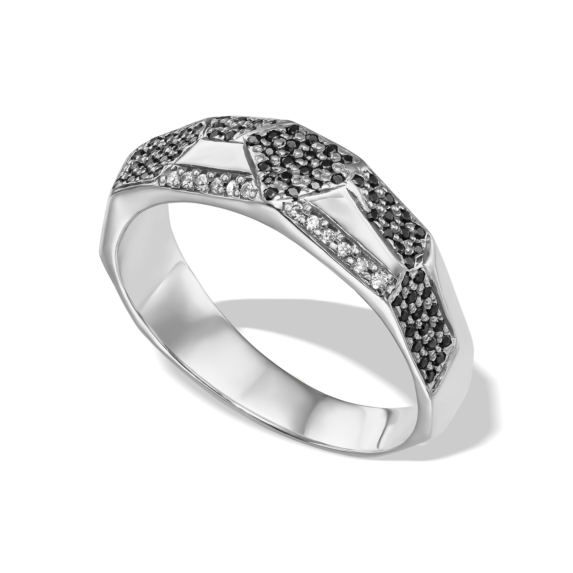 טבעת יהלומים שחורים ולבנים
