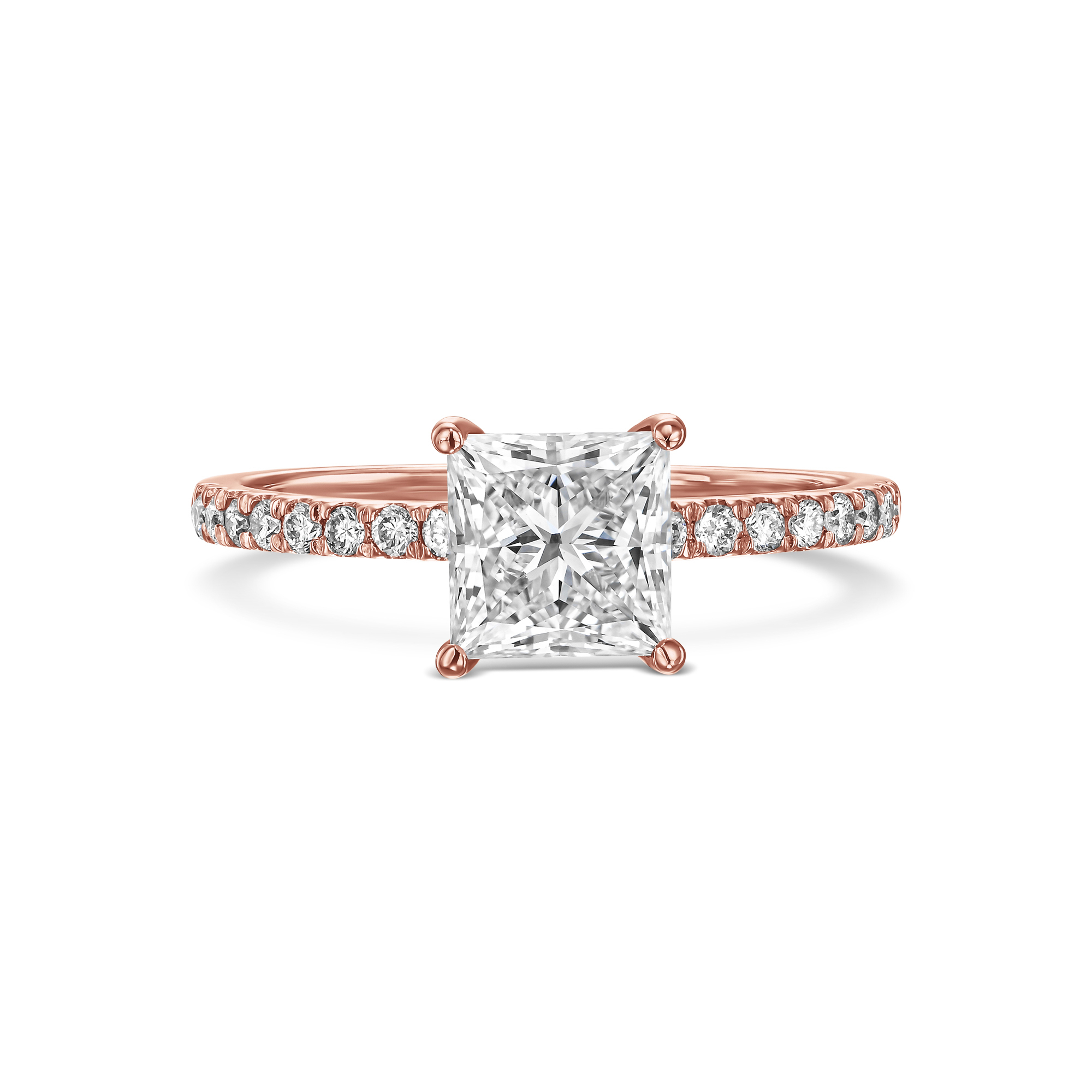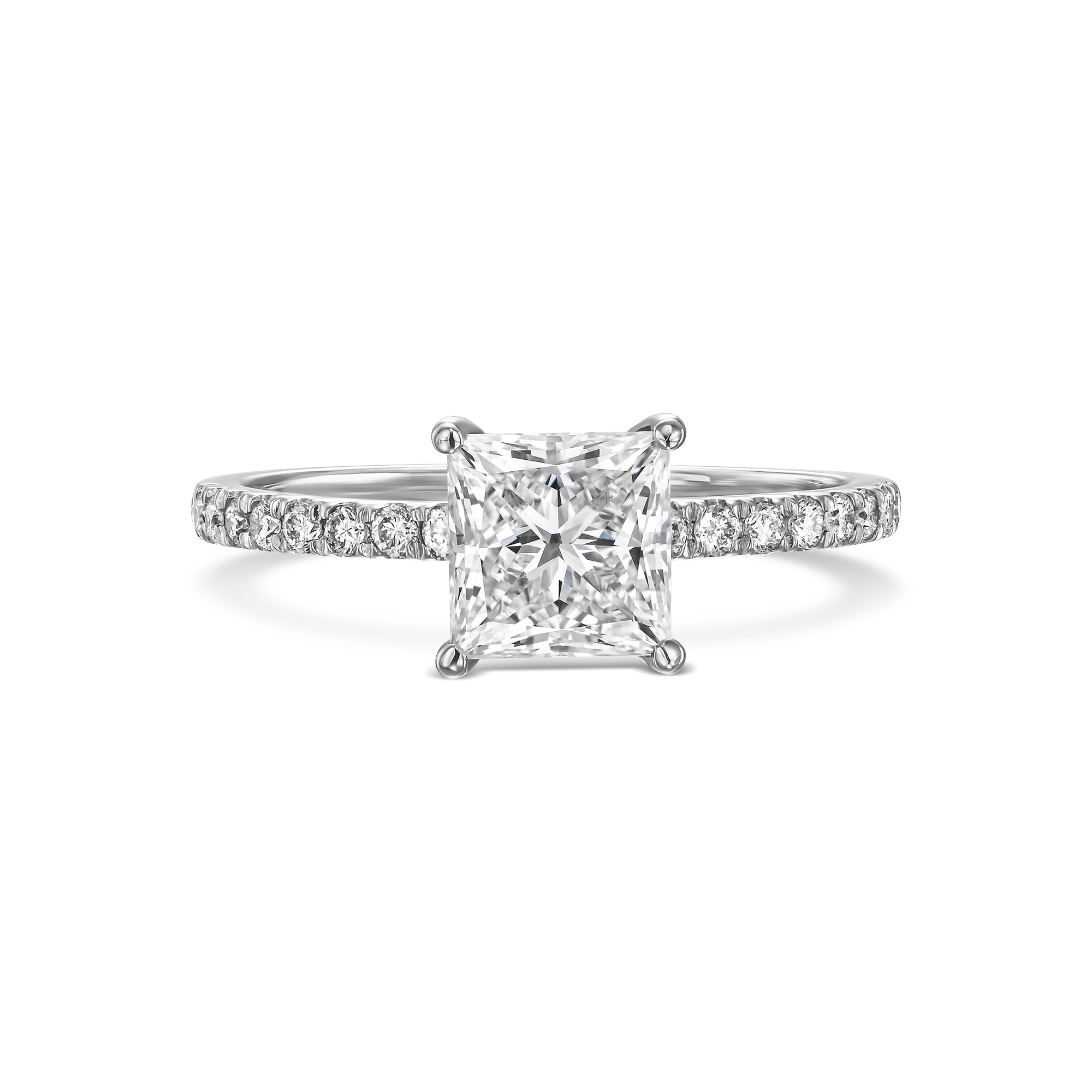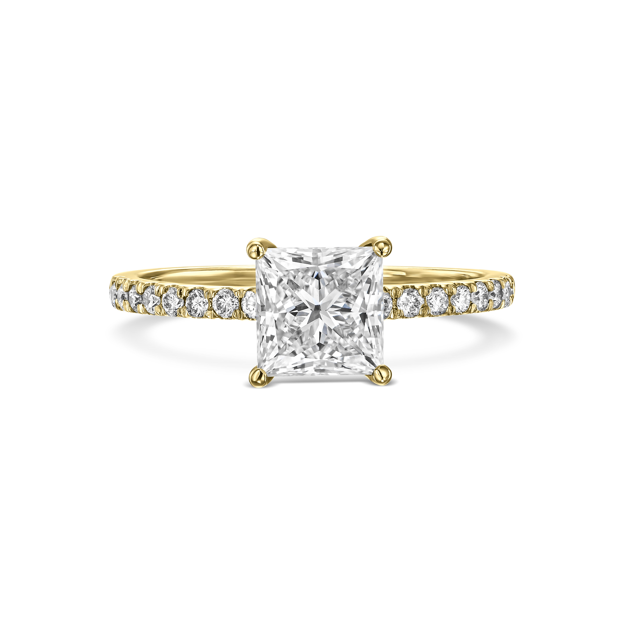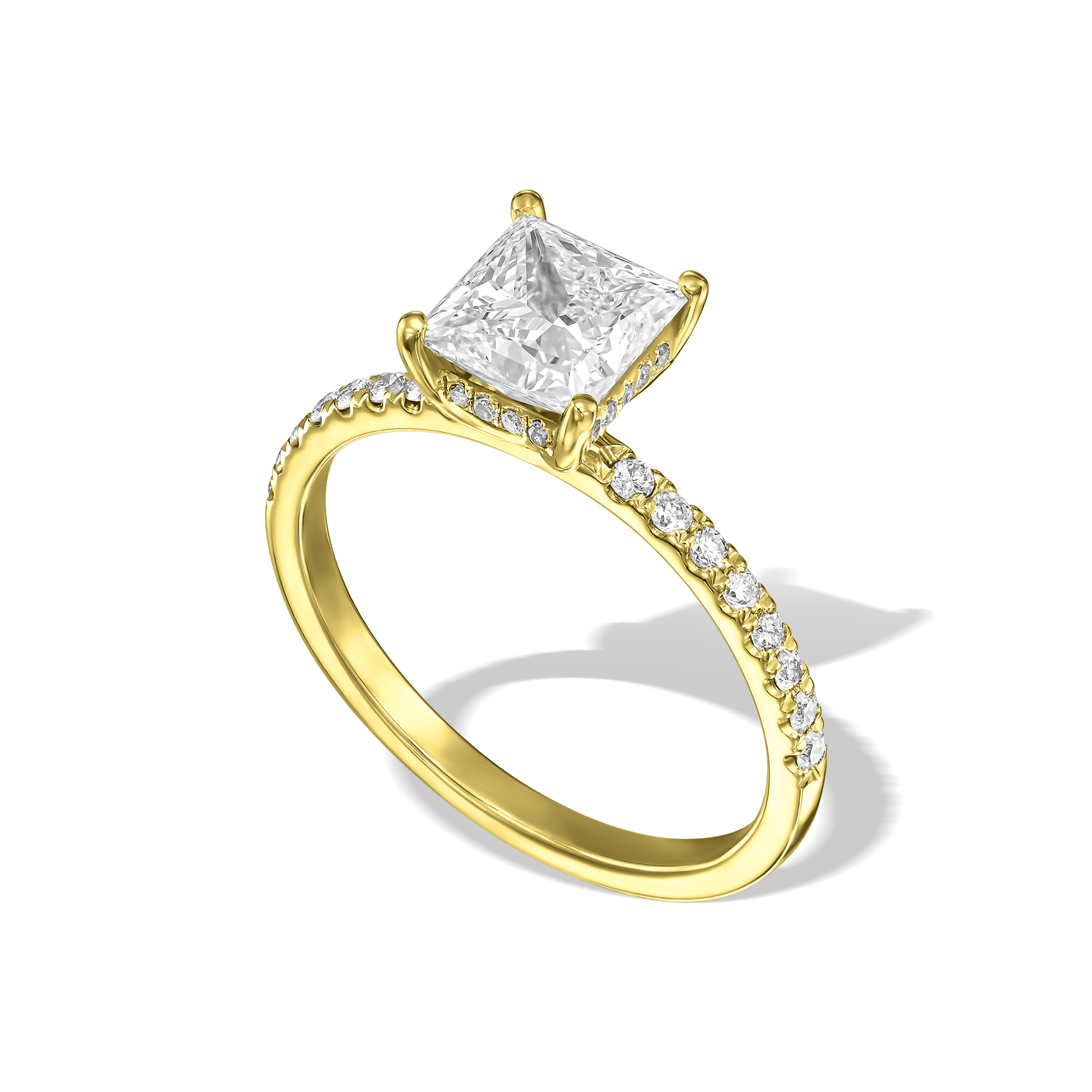 טבעת יהלום בחיתוך פרינסס מרובע משובצת יהלומים מתחת לכתר ויהלומים בצדדים בניקיון VS-VVS סה"כ 0.35 קראט מסביב